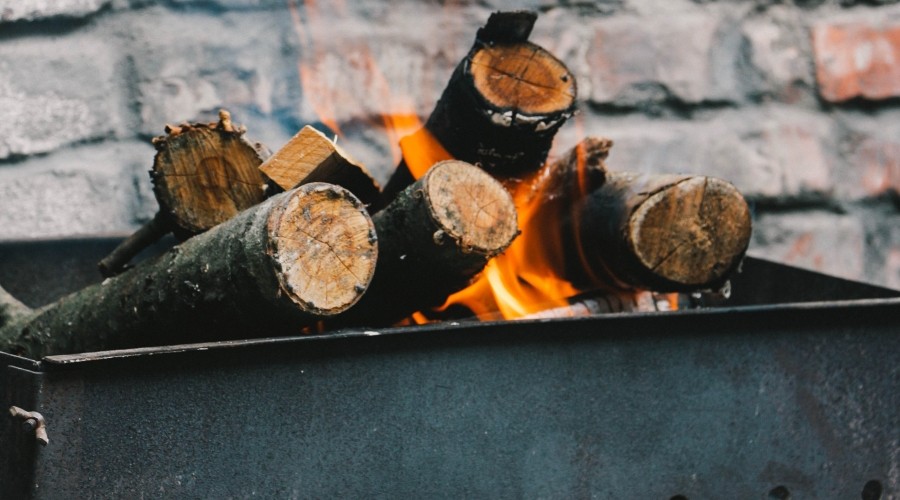 Patientez jusqu’à ce que le feu soit bien lancé et réunissez les coupes de bois classiques et les bûches de bois compacté.